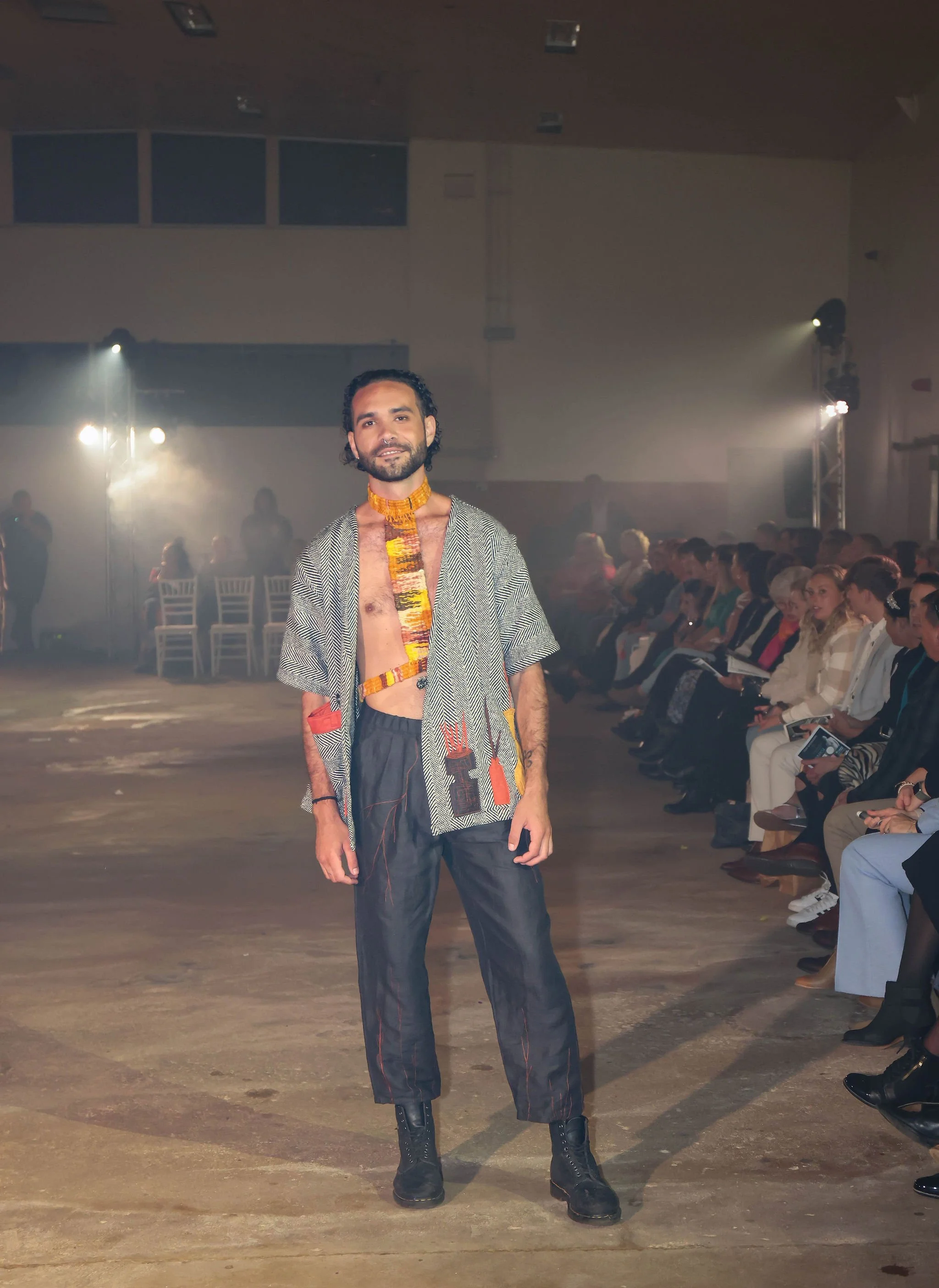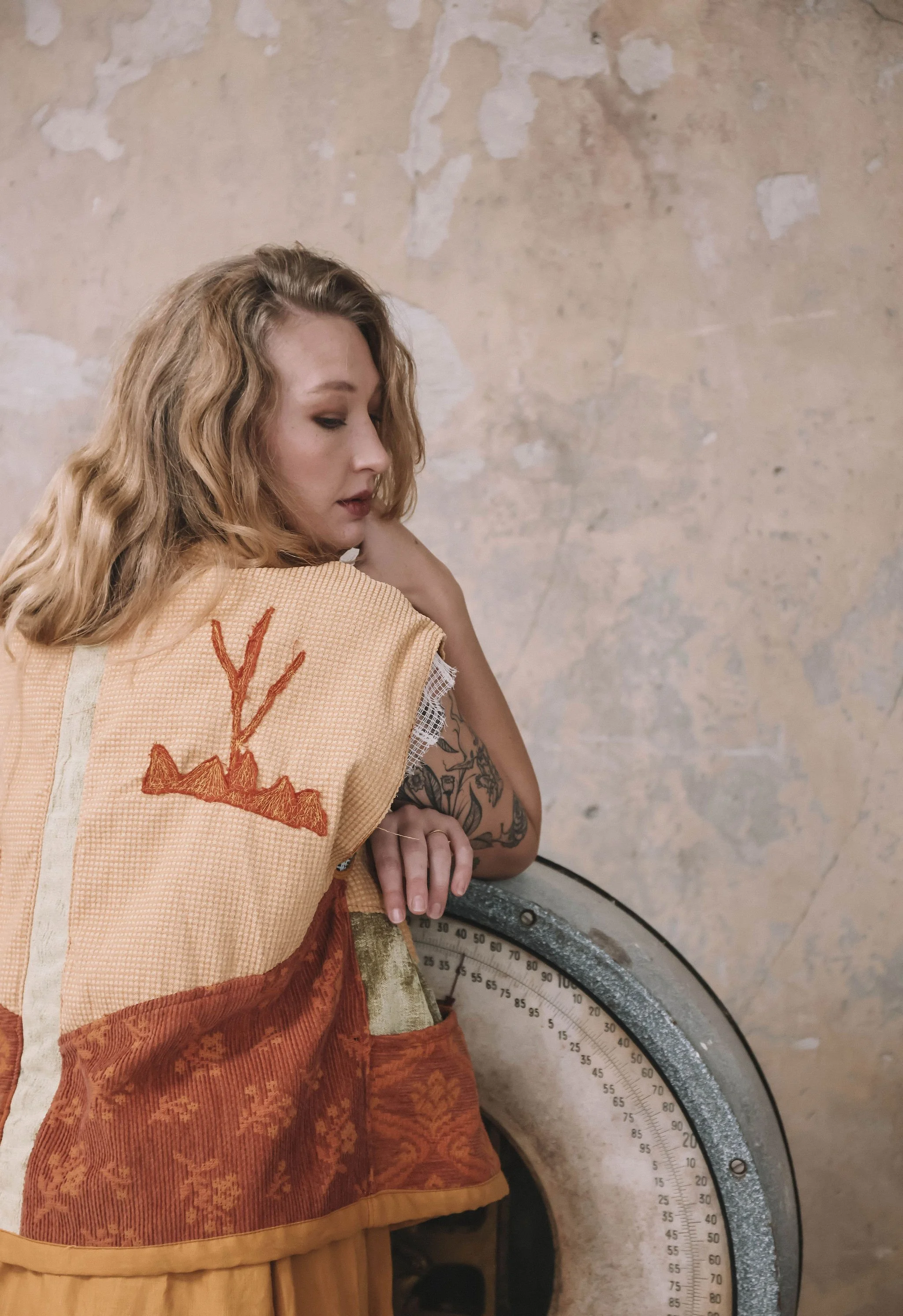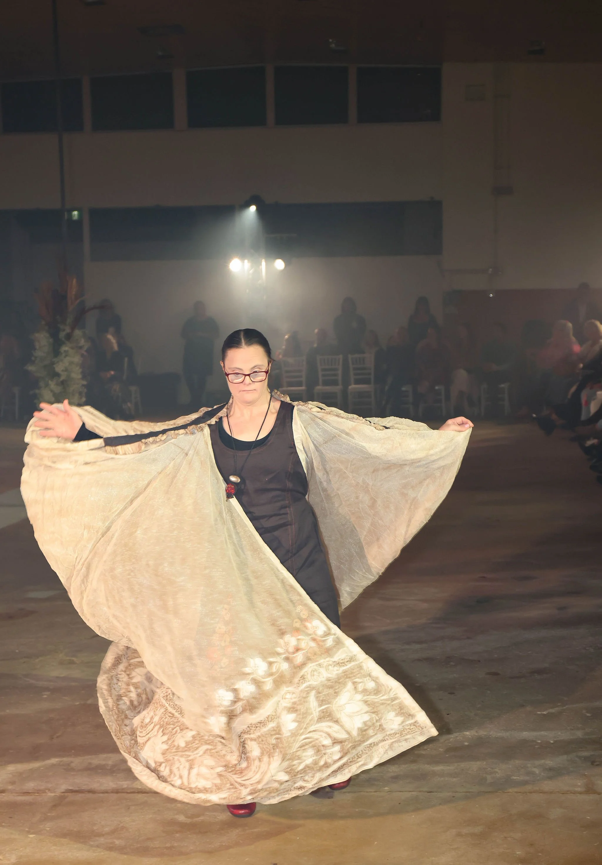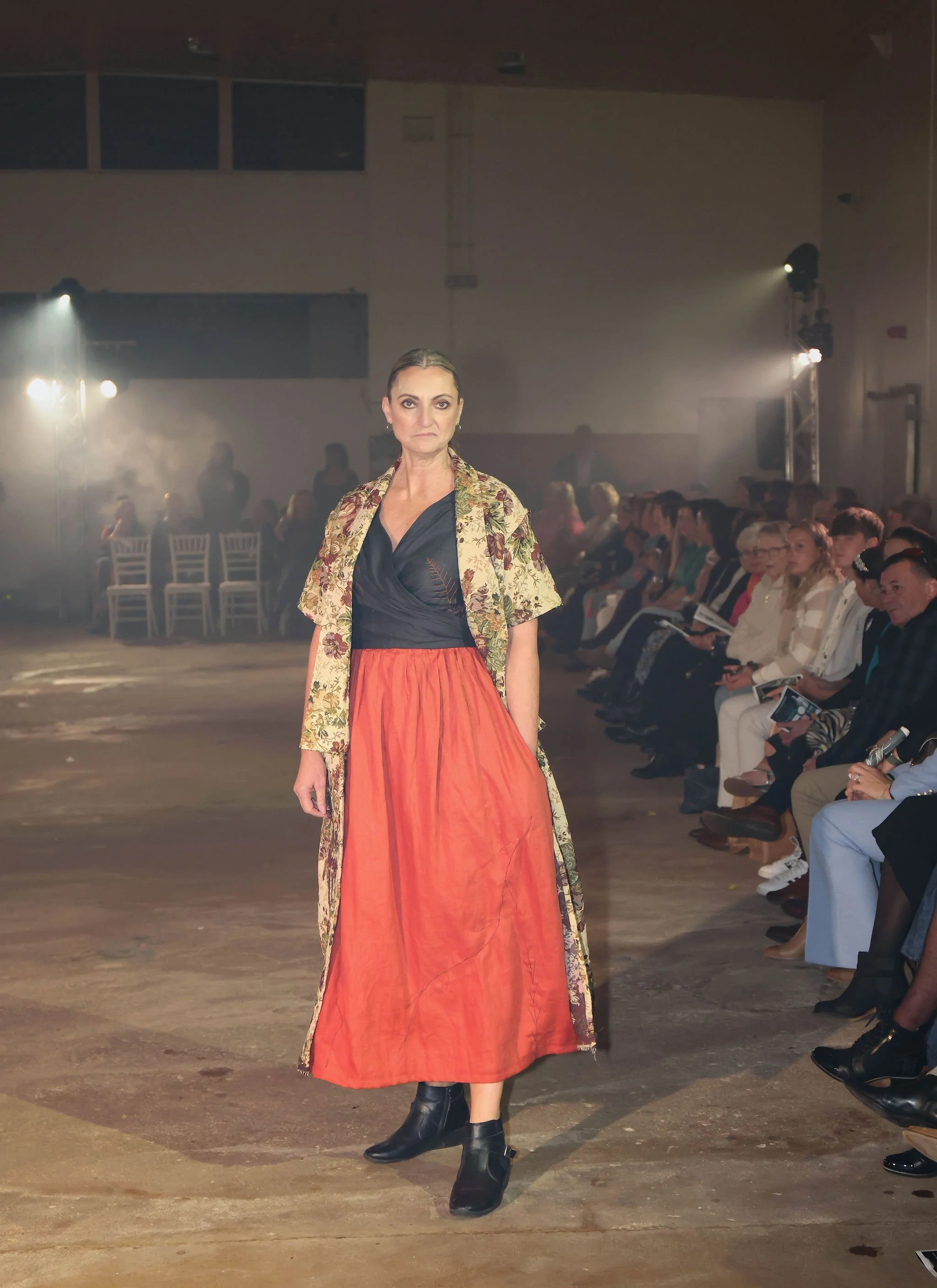 The body of work called “The dying world” created for the Macleah Valley fashion show (2024) was intended to raise awareness for the environmental challenges facing our world. Recognising the significant environmental impact of the fashion industry, Anne utilised opshop fabrics, old curtains, and deadstock fabric to design jackets and garments showing the narrative of our rapidly deteriorating planet. Through the depiction of dying nature, bushfires, and wilting potted plants appliquéd onto the jackets, she aimed to evoke discomfort in the viewer and prompt them to make more mindful choices when purchasing clothing.